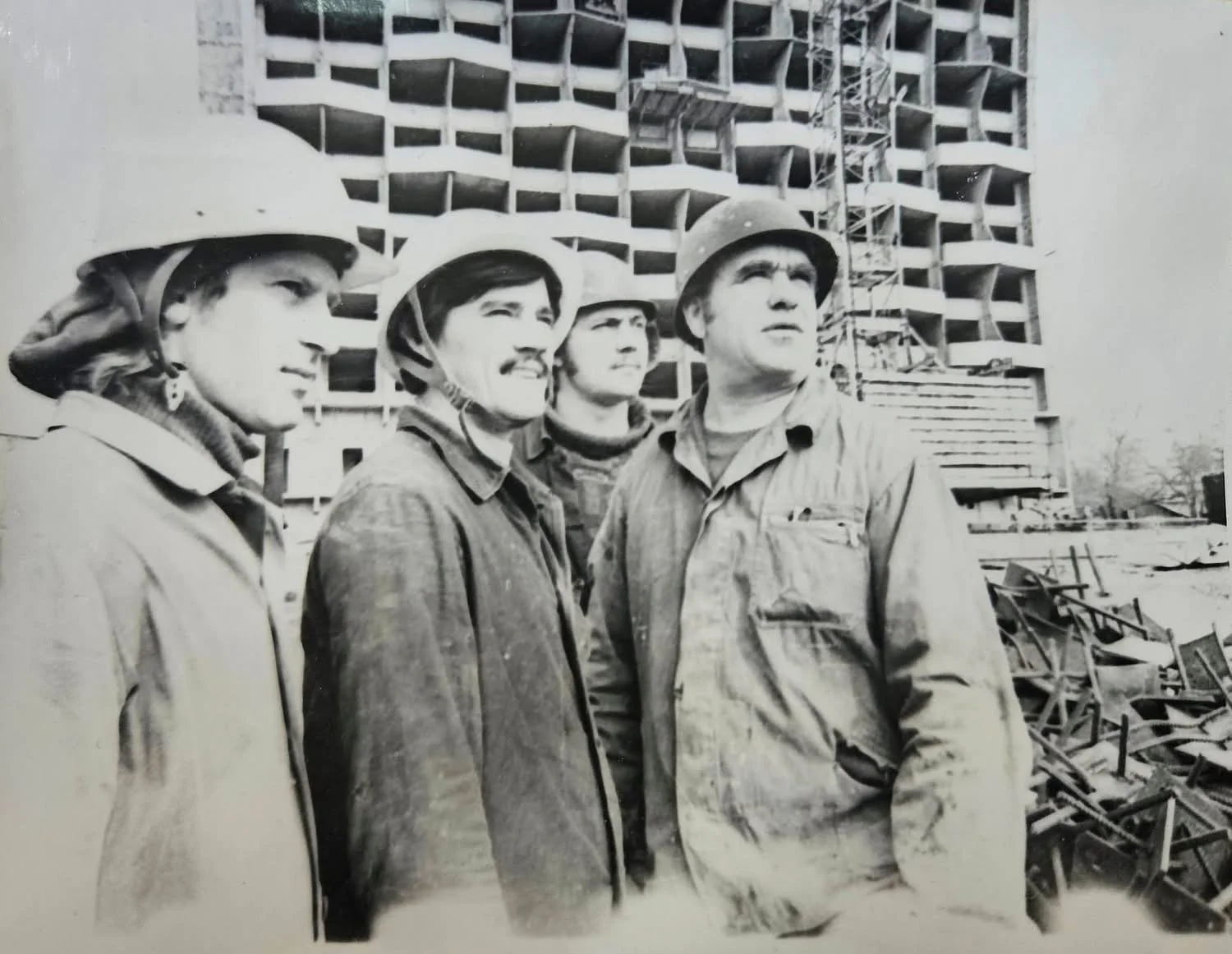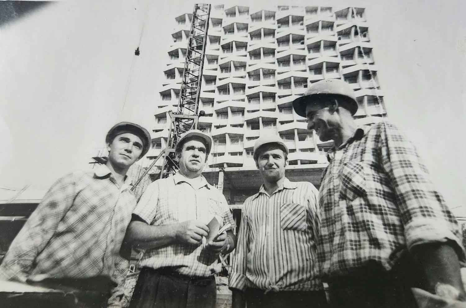Photos by Ion Stefanita in the construction site of the Cosmos hotel, 25th April 1979. Sourced from Facebook group “Chisinaul Nostru”